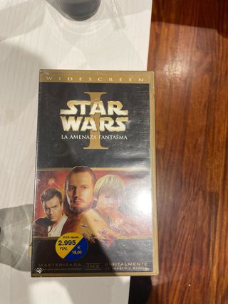 Película Star Wars: Episodio I - La Amenaza Fantasma en formato VHS. - Edición Widescreen. - Audio y vídeo digitalmente remasterizados con tecnología THX. - Precio recomendado original: 2.995 Ptas. / 18,00 €.