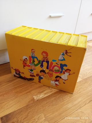 Colección completa de la Abeja Maya en VHS. ¡18 películas para disfrutar! La caja está un poco desgastada por el uso, pero las cintas parecen estar en buen estado. - Incluye 18 cintas VHS de La Abeja Maya. - Formato VHS. - Idioma español. - Falta una cinta 📼, volumen 7. 13-14.
