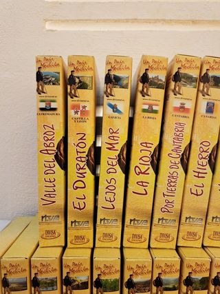 Colección completa de la serie de TV " Un país en la mochila " de Labordeta en VHS. Formada por 29 rutas más Un libro.