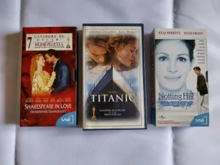 Conjunto de tres películas en formato VHS. - Titanic - Notting Hill - Shakespeare in Love Se vende el lote 9€ #películas #VHS #Cine