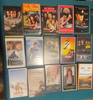 Precio por unidad 3 euros. Precio por lote y envios: Pearl Harbol. Pulp Fiction El Bar Coyote. 9 semanas y media. La Milla Verde. Ghost. Notting Hill.Cadena de favores. La Vida es Bella.Titanic.Tomb Raider. Edición Especial. El Señor de los anillos.Top Gun.Los Tres Mosqueteros.Star Wars.La Letra Escarlata.La Chaqueta Metálica.Full Monty ¡Viven! Los Puentes de Madison.Sonrisas y Lágrimas.En el Nombre del Padre.Memorias de África.Mujercitas.Stalingrado Striptease.El Planeta de los Simios El Planeta de los Simios James Bond 007. El Mañana nunca muere James Bond 007. Goldfinger James Bond 007. oldeneye Más películas VHS y DVD en mi pe