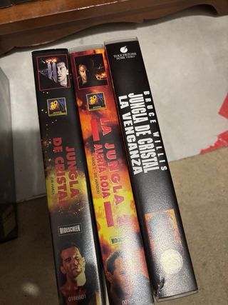 Lote de VHS en buen estado. Algunas películas y series incluidas son: La Jungla de Cristal (trilogía), Mafalda (varias temporadas), El concierto de Luis Miguel, Depredador 2 y Seven. - Incluye 17 VHS en total. - Algunas cajas presentan señales de uso. - Perfecto para coleccionistas.