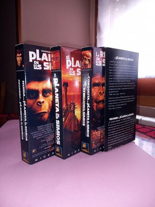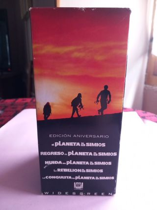 Colección en vhs con su estuche de películas del planeta de los simios.Contiene 3 cintas con 5 películas,más aparte extras de las películas.