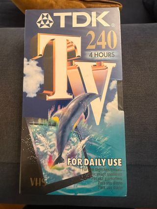 Cinta de vídeo TDK con capacidad de 240 minutos (4 horas). - Ideal para uso diario. - Formato VHS. Precintada. Entrega en mano en Valladolid y posibilidad de envío. No se admiten ni cambios ni devoluciones.