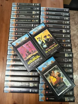 Colección de 40 títulos cintas VHS de western de Planeta de Agostini. Incluye títulos clásicos del género. - Títulos visibles en las imágenes. - Formato VHS. - Idioma español.