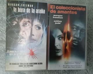 Las dos películas de la saga del detective interpretado por Morgan Freeman: La hora de la araña y El coleccionista de amantes. Los VHS y las carátulas están en buen estado, no así las cajas, alguna de las cuales presenta rotura en las esquinas. Precisan asimismo de cierta limpieza en el plástico. Ver Dos últimas fotos. Pack indivisible de las 2 por el precio indicado.