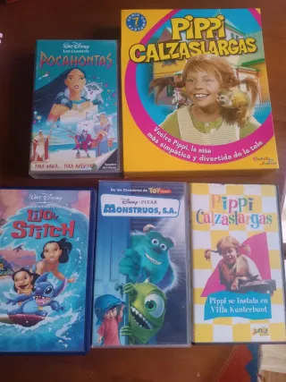 Lote 4 Películas VHS Disney y Pippi Calzaslargas