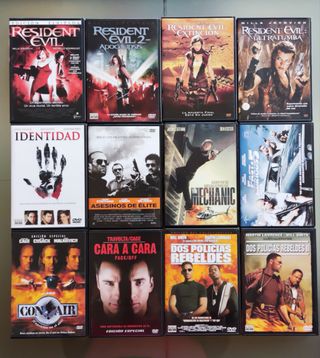 Varias películas en DvD. Todas en perfecto estado. 3€ la unidad, excepto el cofre de Dos policías rebeldes a 6€ (Indivisible). Si hago envíos. Resident Evil. Resident Evil Apocalipsis. Resident Evil Extinción. VENDIDA Resident Evil Ultratumba. Identidad. Asesinos de élite. The Mechanic Mecánico. Fast and furious 5. Con air. Cara a cara. Cofre Dos policías rebeldes 1 y 2 (Indivisible).