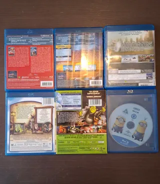 Lote de siete películas en formato Blu-ray, perfectas para toda la familia. - Up (Disney) - Cars (Pixar) - El Rey León (Disney) sin el dvd - Aviones (Disney Pixar) - Shrek (DreamWorks) - Shrek: El Capítulo Final (DreamWorks) - Película de Minions 2 (Illumination/Universal) sin caratula. Alguna pestañita rota de la caja.