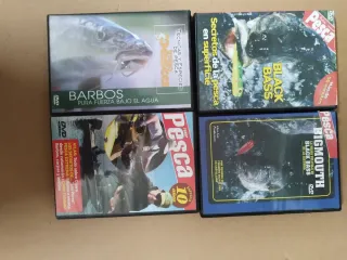 Lote de cuatro DVDs sobre pesca deportiva. - Barbos: Pura Fuerza Bajo el Agua - Secretos de la Pesca en Superficie - Black Bass - Bigmouth: La Mejor Película de Black Bass de la Historia