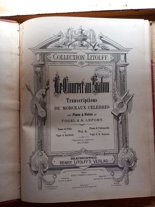 Libro antiguo de Piezas para Piano. El contenido está correcto, la encuadernacion està un poco deteriorada H.Rosellen: Fantasia 15 pàg i Les porcherons 15 pàg. Hummel: Scherzo (3pàg.), Rondoletto (8), Contemplazione (6), Rondó (6), 5 variacions sobre un tema de Schubert (6), Rondó a l'hongaressa (8) W. Taubert: Titania (13) H.Herz: Grand Fantasie sobre melodies de Schubert, (15) H. Rosellen: Ballade (11) Meynne: Fantasie (17) - Incluye direcciones en Barcelona: Rambla San José, 29 (Casa Guardia) Puerta del Ángel, 1 y 3 (antes J.B. Pujol).