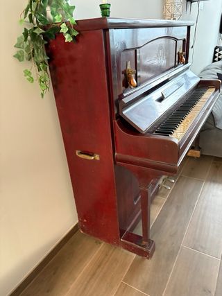 Vendo Piano Marca SINFONIC antiguo, tal y como se muestra en las fotos, necesita restaurar algunos arañazos dado q algunas zonas de la madera tiene abolladuras y afinar pero muy poco ya que suena de maravilla. Es muy bonito como pieza decorativa, el teclado está completo y cuenta con tres pedales en la parte baja que también funcionan. El comprador tiene que hacerse cargo de la recogida ya que tienen que bajarlo de un principal a la calle por el balcón, por las escaleras no cabe. MEDIDAS: ALTO: 135cm. aprox. ANCHO: 155cm. aprox. PROFUNDIDAD: 69cm. aprox.