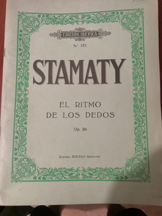 Partitura de piano de la obra "El ritmo de los dedos", Op. 36, de Stamaty. Edición Ibérica, nº 121. Editorial Boileau, Barcelona. És un habitual en las classes de piano. Yo ya he aprendido con él Ahora deseo que sea util para alguien más. Buen estado. No tiene ni anotaciones de uso. Hojas un poco amarillas porque es una edicion antigua.