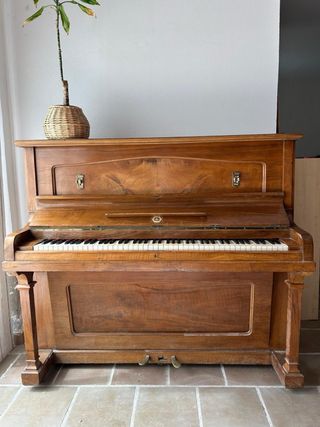 Muy buen estado y funcionamiento. Una joya. Creo que es del año 1914. Madera maciza nogal. Teclas marfil y ébano. Se regala banqueta antigua ajustable en altura. Rebajado de 1600 Negociable Venta en persona