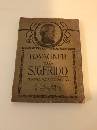 Partitura para piano solo de la obra Sigfrido, de Richard Wagner. Es una edición antigua de G. Ricordi & C. Editores. - Incluye la partitura completa de Sigfrido. - Edición antigua en buen estado de conservación. - Perfecta para coleccionistas o estudiantes de música.