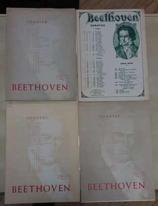 Conjunto de partituras de L. van Beethoven para piano solo, en ediciones tradicionales de estudio. Incluye sonatas, sonatinas y piezas sueltas como Sonata n.º 8 “Patética” y Adiós al piano. Ediciones clásicas de editoriales españolas (Boileau, Música Moderna, etc.). Ejemplares antiguos, con signos normales de uso y envejecimiento, papel legible y completo. Ideal para estudiantes, profesores o aficionados que buscan repertorio sólido de Beethoven en ediciones prácticas.
