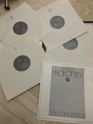 Prokofiev, los conciertos: los 5 conciertos para piano, los dos conciertos para violín y la sinfonía concertante para violoncelo. Frank Liszt, integral de la obra para órgano. Haendel Judas Macabeo, Oratorio. Regalo de bodas antiguo. Han estado 40 años en un armario. Entrega solo en mano porque dudo que por correo lleguen enteros. Precio por todos, no separo