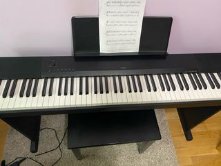 Piano digital Casio CDP-S100 en color negro. Incluye soporte y pedal. Perfectísimo estado. Con mueble de madera y butaca. - Teclado de 88 teclas contrapesadas. - Diseño compacto y ligero. - Sonido de piano de cola. - Conexión para auriculares y USB.