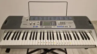 El teclado fue comprado en 2019 y se encuentra en muy buen estado general, tal y como se aprecia en las fotografías. A pesar de haber sido usado de forma regular durante el último año y medio, todas las teclas, funciones y la pantalla digital funcionan perfectamente. - Cuenta con 61 teclas de tamaño estándar, ideal para principiantes. - Incluye 400 tonos de alta calidad y 100 ritmos de acompañamiento. - Dispone de 50 patrones de "Dance Music" para crear pistas de baile de forma sencilla. - Ofrece una función de lecciones compatible con la aplicación Chordana Play de Casio. Incluye atril y cable de alimentacion.
