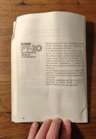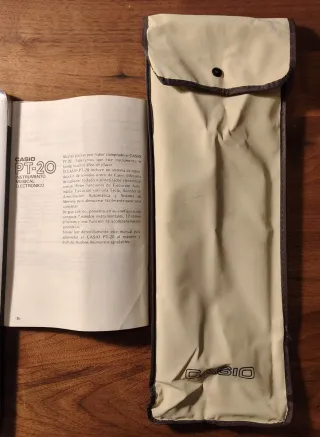 Funda original y manual de instrucciones para el Casio PT-20. - Funda de tela color beige con cierre de botón. - Manual de usuario en español. Posibilidad de envio