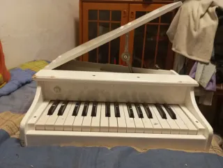 Piano de electrónico marca Hape en color blanco. - Teclas blancas y negras. - Diseño de piano de cola. - Funcionamiento perfecto. No envíos entrega personal, gente sería gracias.