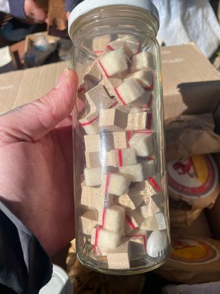 Piano de cola de 12 notas de juguete, antiguo. 12 note baby grand piano. Suena como el primer día aunque estéticamente con desgaste acorde al uso y antigüedad, incluyendo varias marcas, arañazos y desconchones en la pintura. A una de las patas de le ha despegado la arandela de madera roscada pero la tiene, aunque encaja y soporta el peso, no queda completamente fijada como las otras dos. La caja presenta signos visibles de desgaste y anotaciones como se puede observar en las fotos.