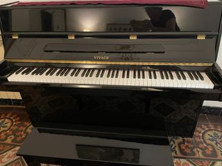 Piano de pared, marca VIVACE. Poco utilizado y muy bien conservado. Se tendria que afinar, por el poco uso que se le ha dado. En perfectas condiciones. Con banqueta incluida en color negro.