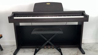 Piano digital Casio en acabado marrón oscuro, ideal para practicar. - Incluye atril. - Incluye banqueta a juego.