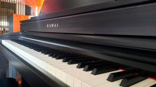 Piano digital Kawai en color negro. Cuenta con un atril integrado para partituras. - Teclado de 88 teclas. - Diseño elegante y moderno.