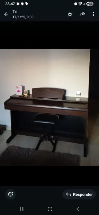 Piano digital Roland HPi-7F con banqueta. - Pantalla integrada con partituras. - Teclado de alta calidad. - Diseño elegante. -Puedo adjuntar más fotografías, resolver las dudas necesarias y adjuntar vídeo de sonido si se requiere. -Piano digital de mueble. Recogida en mano en Madrid (peso elevado) Pago y gestión exclusivamente por Wallapop. No intercambio teléfonos, mails ni ningún tipo de dato fuera del control de la plataforma en cuestión.
