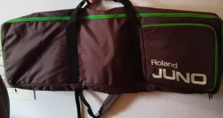 Funda de transporte para teclado Roland JUNO. Es de color marrón con detalles en verde. - Material resistente. - Asas de transporte. - Bolsillo exterior para accesorios . - Medidas 102 cm x 32cm