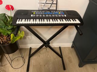 Teclado electrónico Yamaha YPT-260. - Diseño compacto y ligero. - Panel de control con pantalla LCD. - Altavoces integrados. - 61 teclas sensibles a la pulsación. - Incluye soporte para partituras. -Hay una tecla medio partida pero no afecta en nada Ideal para aprender