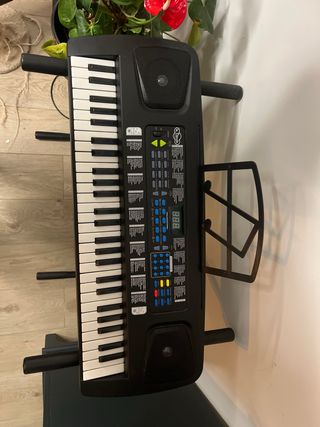 Teclado electrónico con varias funciones. - Teclas blancas y negras. - Altavoces integrados. - Soporte para partituras.