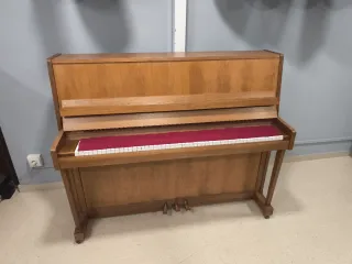 Piano vertical de madera color natural. Fabricado en Tchekoslovaquia. - Teclado con tela roja. - Tres pedales. -Banqueta graduable -Transporte incluido