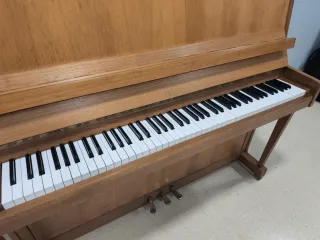 Piano Vertical Samick M1 (Fabricat a Corea) - Molt bon estat Es ven piano vertical Samick M1 (model consola) en molt bon estat de conservació, tant estètic com mecànic. És un instrument ideal per a estudiants de grau elemental i mitjà que busquen un piano acústic compacte i fiable. Detalls Tècnics i Historial: Número de sèrie: 412176 (Fabricat entre 1991-1992 a la factoria de Samick a Corea del Sud, reconeguda per una construcció més robusta que les produccions posteriors a Indonèsia). Dimensions: Aproximadament 108 cm d'alçada. Disseny compacte, perfecte per a pisos o espais reduïts. Estat mecànic: Teclat amb un tacte homogeni