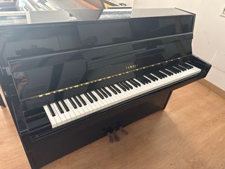 Piano vertical de la marca Yamaha en acabado negro brillante. Un instrumento clásico para disfrutar de la música. el piano tiene algunos roces y arañazos en el mueble que al ser el piano de color negro apenas se notan. -Preferiblemente para recoger - Se pueden hacer envíos a toda España. dependiendo de la provincia con un costo entre 250/350€. Incluimos una banqueta regulable de segunda mano pero en buenas condiciones - si el cliente lo quiere afinado y regulado tendría un coste de 100€ euros en nuestros almacenes, no en casa del clliente