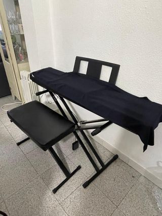 color negro. - Diseño compacto y elegante. - Teclado de 88 teclas contrapesadas. - Sonido auténtico de piano de cola. - Incluye soporte para partituras. Informacion disponible en internet con caracteristicas piano para clases en escuela de musica y tener en casa donde practicar, pero la escuela cancelo su contrata con ayuntamiento y no se tocar, solo uso 6 meses unas horas, asi que gustaria venderlo, incluyo banqueta desmontable, pies de piano en tijera y funda tela proteccion, tiene pedal sustain, manual, caja original Preferible trato en mano