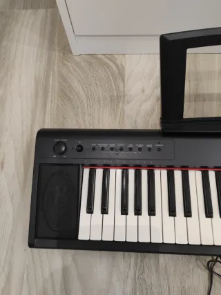 Piano digital Yamaha Piaggero np-11. - Varios sonidos además de pianos. - Soporte para partituras. - Teclado de 61 teclas sensibles a la velocidad. - Altavoces integrados. - Adaptador original. - Soporte Gewa incluido.