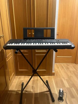 Teclado digital Yamaha en color negro. - Soporte en forma de X incluido. - Atril para partituras. - Pedal de sustain.