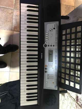 Teclado electrónico Yamaha en buen estado, ideal para aprender a tocar. - Incluye soporte plegable. - Panel de control con botones y pantalla. - Teclas blancas y negras. - acepto cambios