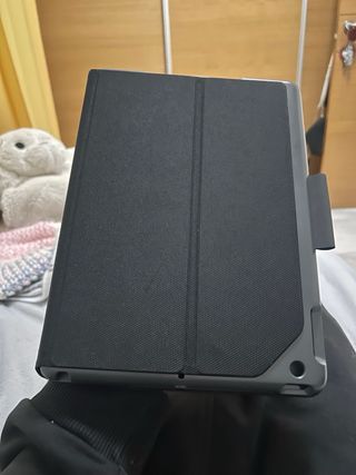 esta nueva nunca mal uso utilizada una vez para probar nunca ma echo falta fue un regalo funciona perfectamente ni arañazos ni nada (medida 240mm de alto x 169,5mm de ancho x 7,5 mm de grosor) yo tengo el ipad 5 generación y me vale por si no sabes k medida es ay lo pone va con pila