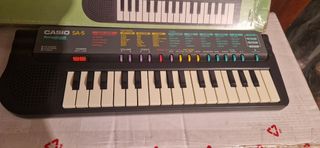 Teclado electrónico Casio PT-82 vintage. - Diseño compacto y portátil. - Teclas blancas y negras. - Panel de control con botones y deslizadores. Funciona perfectamente,las luces ,las teclas e incluso la memoria ROM con varias canciones para tocar siguiendo las luces ,en perfecto estado.Sin caja