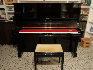 Piano vertical Yamaha U3AS en excelente estado estético y mecánico, todas las teclas y pedales funcionando perfectamente. Es el estándar de oro para conservatorio por su gran sonoridad y calidad. Dimensiones: 131 cm (alto) x 153 cm (ancho) x 65 cm (fondo). Año: 1991 (número de serie 496330) Estado: Maquinaria impecable y mueble muy cuidado. Solo requiere afinación tras el transporte. Banqueta incluida. Se puede ver y probar sin compromiso. Transporte a cargo del comprador.