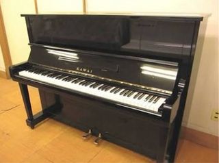 Piano vertical de pared marca Kawai, modelo K20 en Badajoz. Un instrumento clásico con un acabado elegante. Precio especial porque necesita afinación. - Incluye banco (silla) ajustable tapizada en color verde. - Color negro brillante. - Teclado de 88 teclas. - Dos pedales.