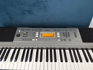 Ideal para iniciarse y aprender, gracias a sus funciones y lecciones incorporadas. Modelo PSR-E343, con 61 teclas y 550 sonidos diferentes. En la página web de Yamaha podréis consultar todas sus características con más detalle. Se incluye en el precio el soporte de partituras, el soporte del teclado, la banqueta, funda para el teclado y el alimentador de corriente. Como se ve en las fotos, la banqueta y el soporte de partituras están desgastados por el uso, de ahí el precio. Con este teclado me inicié yo en el mundo del piano, por eso lo recomiendo para principiantes. Preguntad sin compromiso cualquier duda. Precio negociable.
