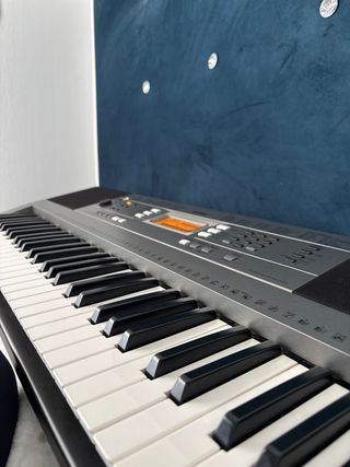 Teclado portátil Yamaha PSR-E353 con pantalla LCD. - 61 teclas sensibles a la pulsación. - 574 voces de alta calidad. - 150 estilos de acompañamiento automático. - Función de lección Keys to Success. - Puerto USB para conectar a dispositivos.