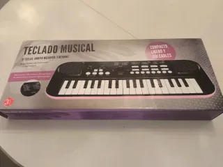 Teclado musical compacto y ligero, ideal para iniciarse en la música. Funciona sin cables. - 37 teclas. - 3 octavas. - Regulación de volumen y tempo. - 100 sonidos, 100 ritmos y 10 canciones de demostración.