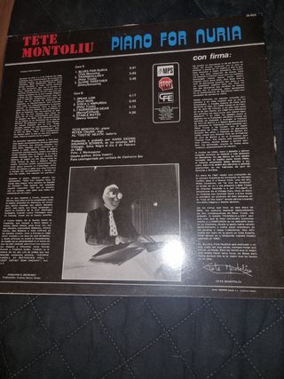 Disco de vinilo de Tete Montoliu. - Título: Piano For Nuria. - Sello: MPS Records. - Referencia: JS-054 H. Edición española de 1982.