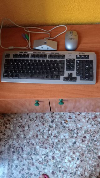 Conjunto de teclado y ratón de la marca Agiler. - Teclado plateado con diseño ergonómico. - Ratón plateado con scroll. - Incluye switch KVM para conectar dos ordenadores.