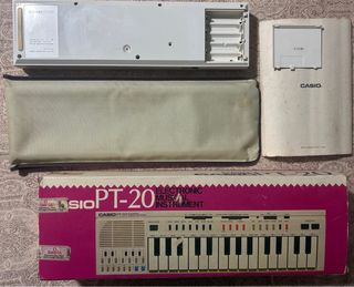 Teclado electrónico Casio PT-20. FALTA la tecla del BALANCE pero puede intercambiarse con la de encendido y la de volumen. Tambien se puede operar perfectamente sin tecla. - Incluye funda de transporte, manual y caja. -La caja es lo que peor está. Contiene el aparato y cierra bien pero tiene evidentes signos de uso y desgaste. -La hojas interiores del manual están en buen estado, sin roturas ni manchas.
